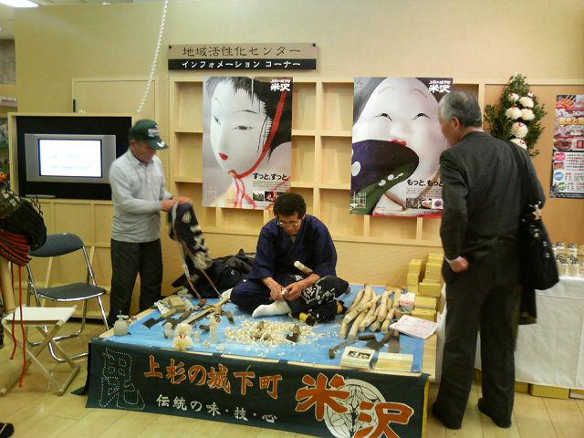 笹野民芸館の二人に来ていただき実演販売もしております。