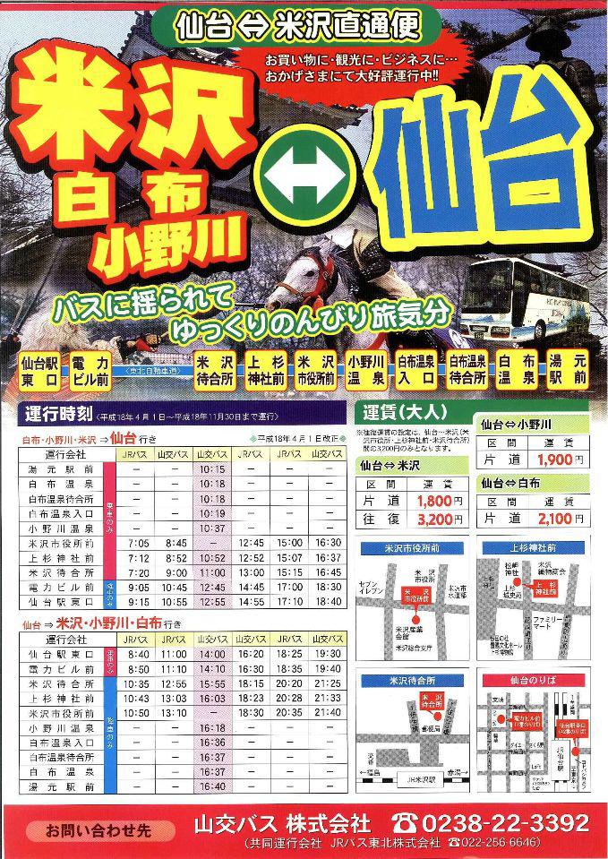 ▼米沢(白布・小野川)⇔仙台直通便 4月1日より運行!