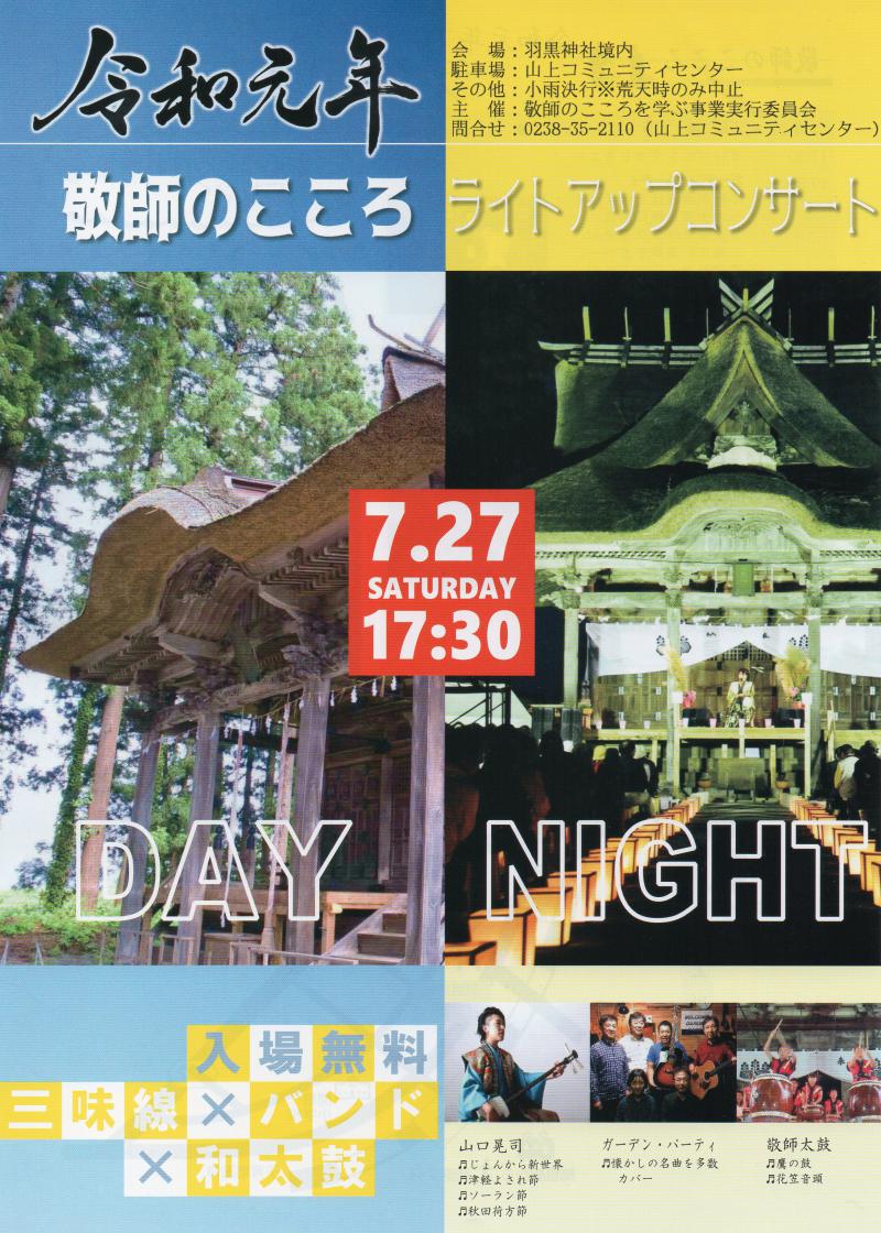山上地区にある羽黒神社をライトアップし、音と光に彩られた