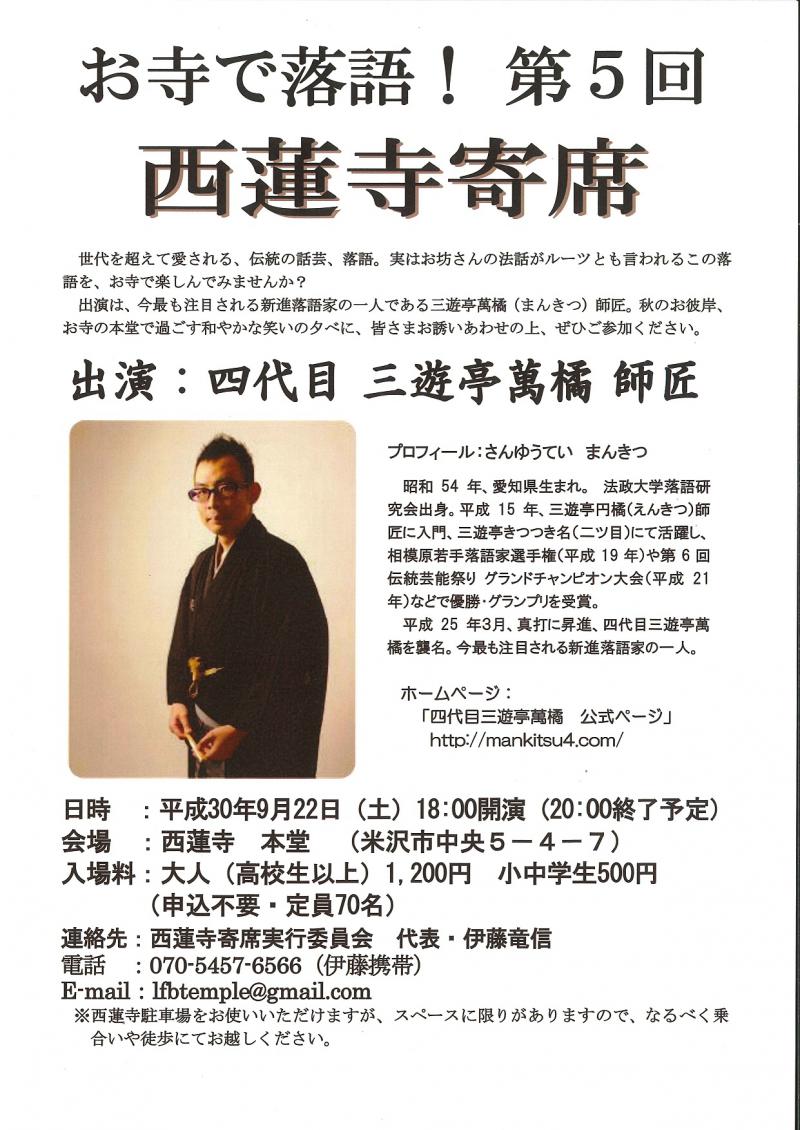 連絡先:西蓮寺寄席実行委員会 代表・伊藤竜信