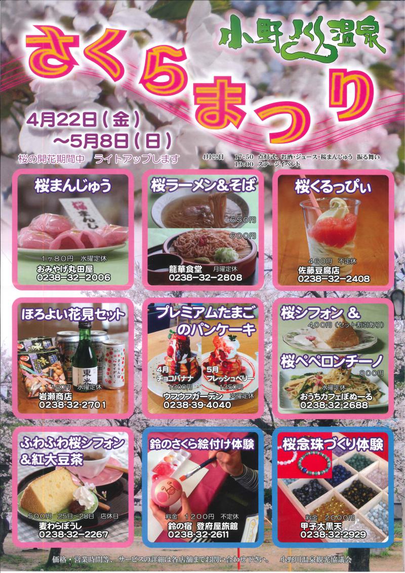 ▼小野川温泉 さくらまつり 4/22〜5/8開催!