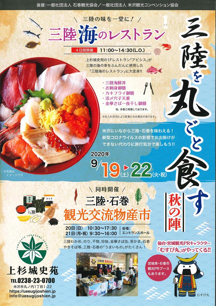 上杉城史苑の1Fレストランが三陸の海の幸をふんだんに使用した