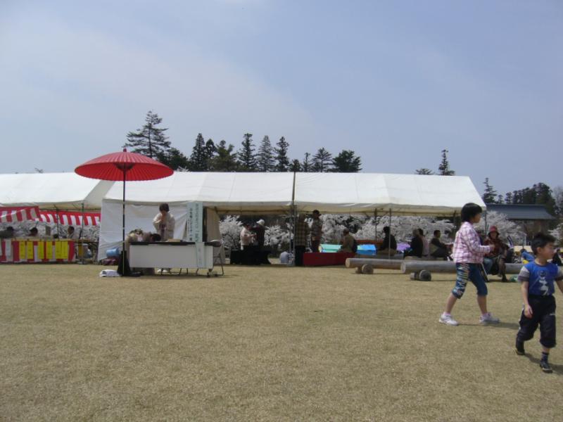 天気もよく、この伝国の杜広場には たくさんの方が お花見をしております。