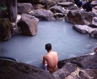 東吾妻、明月荘への登山口標高850mの地にある一軒宿で、渓流添いの露天風呂があります。
