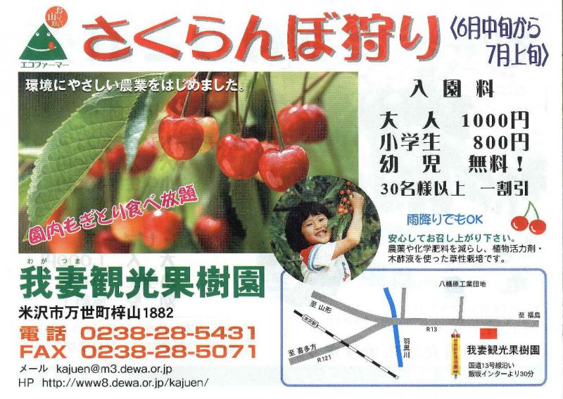 ▼米沢のさくらんぼ園情報 我妻観光果樹園