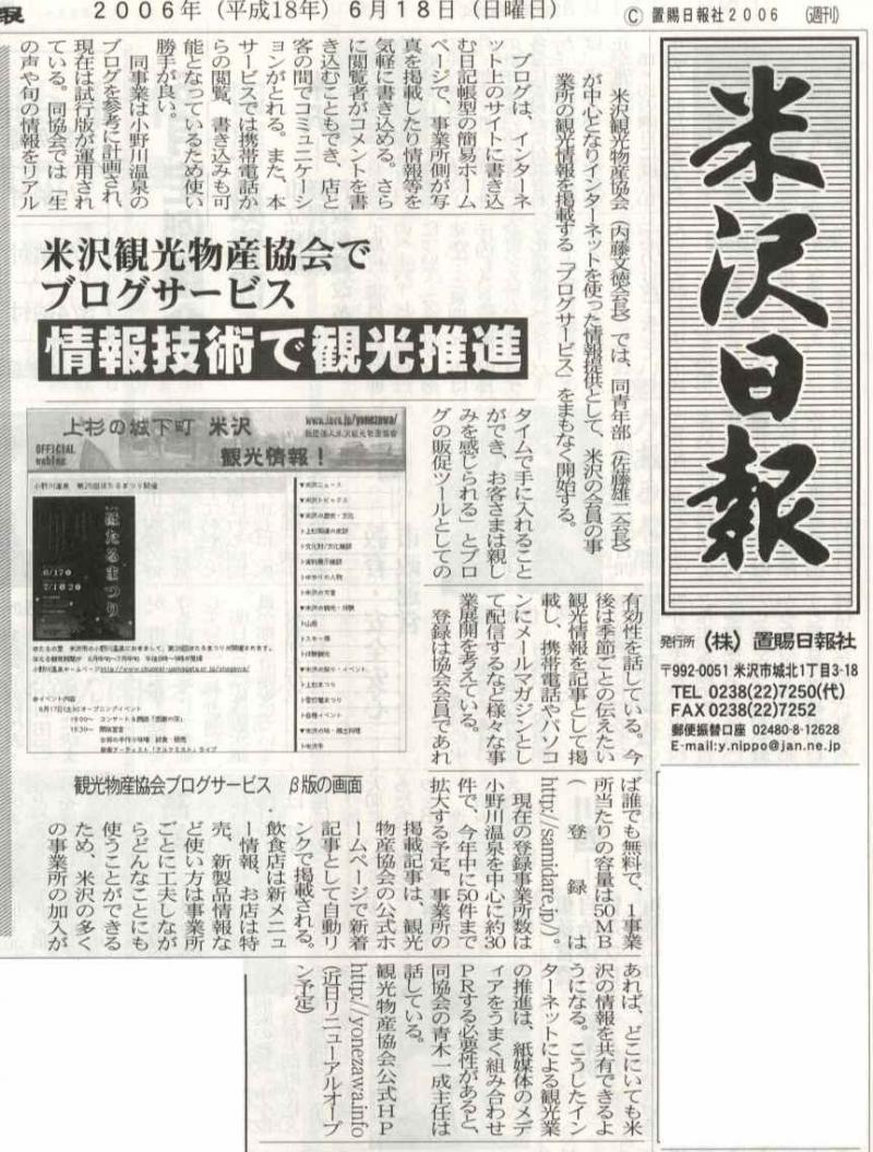 ▼米沢観光物産協会でブログサービス「情報技術で観光推進」