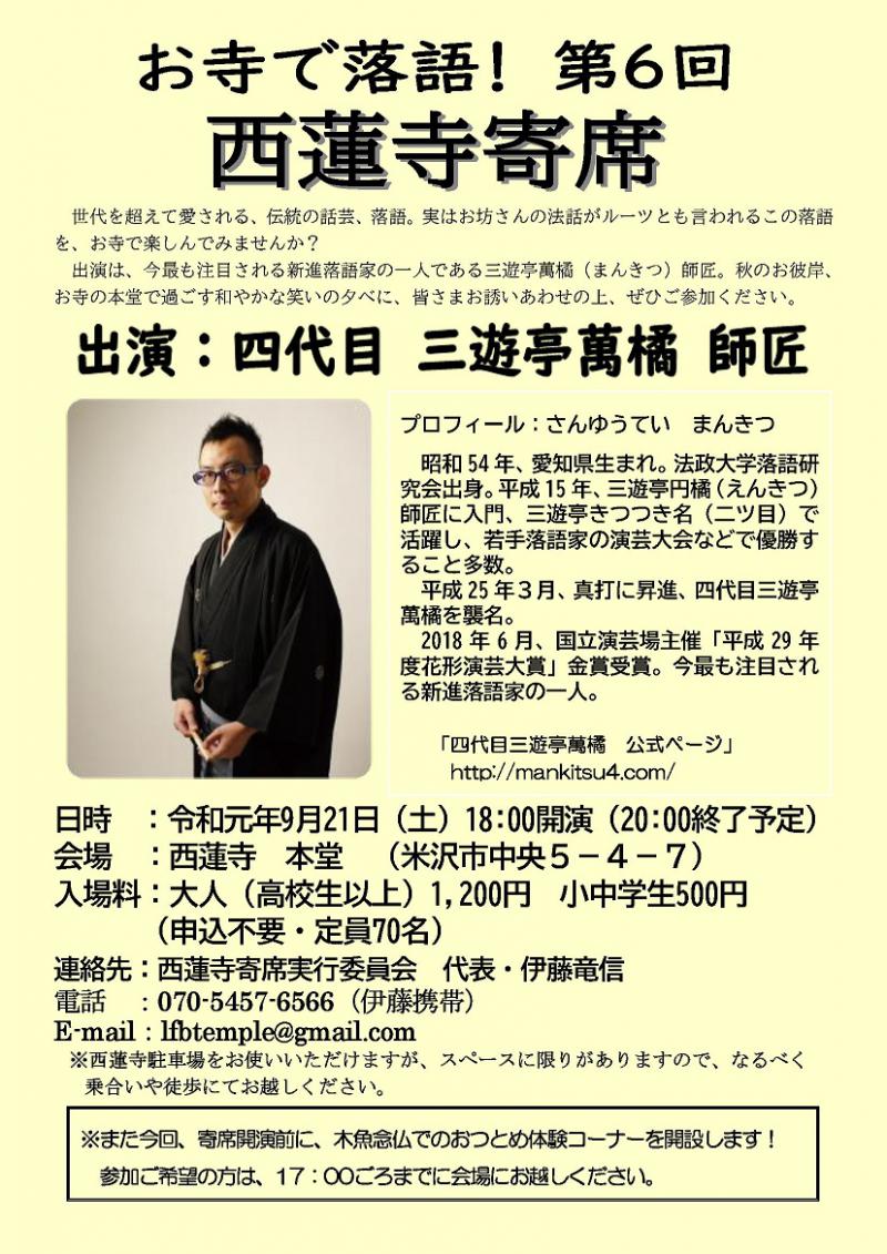 連絡先:西蓮寺寄席実行委員会 代表・伊藤竜信