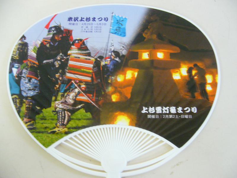 ▼米沢のオリジナル観光うちわ新しく出来上がりました!