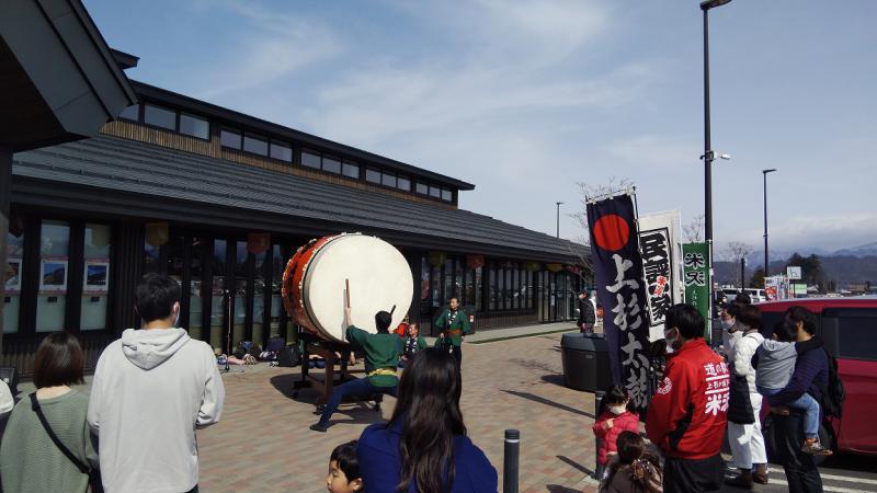 「民謡一家による民謡と太鼓の演奏」 「やまがた愛の武将隊による演武」で