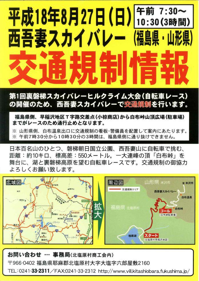 第1回裏磐梯スカイバレーヒルクライム大会(自転車レース)開催のため