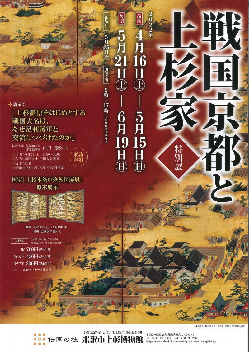 上杉家ゆかりの文化財には、将軍や天皇からの贈答品が現存するほか、国宝「上杉家文書」の中に京都との外交交渉や文化的交流を示す史料が数多く残されています。上杉家の京都外交が政治的関係の構築のみならず、文化的素養を育む機会にもなったことは注目されます。