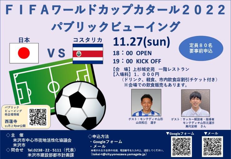 コスタリカ戦のパブリックビューイングが上杉城史苑で開催されます!