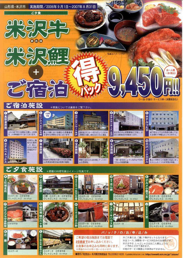 ▼平成18年度版「米沢牛・米沢鯉宿泊マル得パック」明日からスタート!