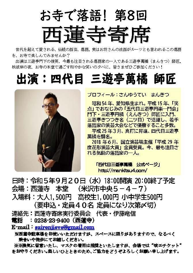 連絡先:西蓮寺寄席実行委員会 代表・伊藤竜信