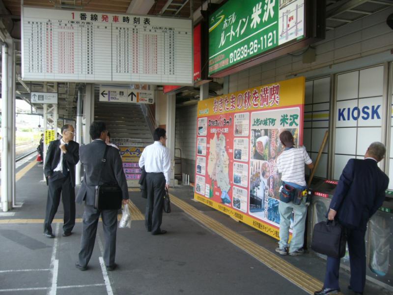 ▼米沢駅にて おきたまの秋まつり PRパネル展示しております!
