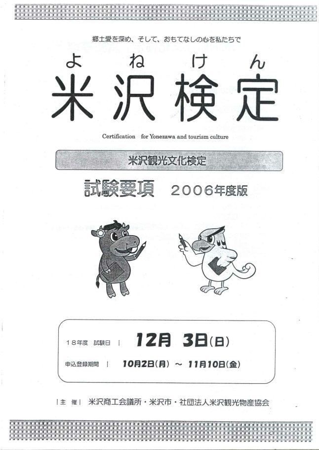 ▼米沢検定「米沢観光文化検定」試験要項2006年度版