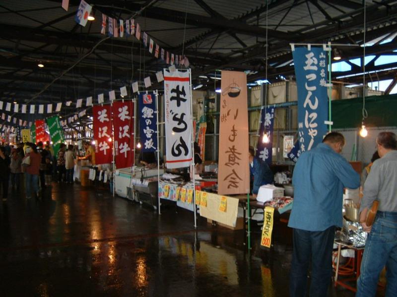 そのおまつりに私たち米沢の物産も毎年出展しており、今年も老舗米沢牛黄木の牛串、いのこんにゃくの玉こんにゃくと山形名物芋煮、宮坂鯉店の鯉の甘煮、米沢牛丼、秋葉糀味噌醸造・おたまやのもろみなす、甘酒