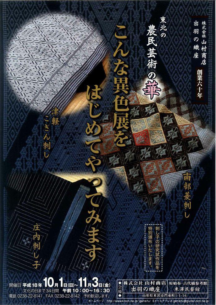 津軽こぎん刺し、南部菱刺し、庄内刺し子などの東北の刺し子の展示。