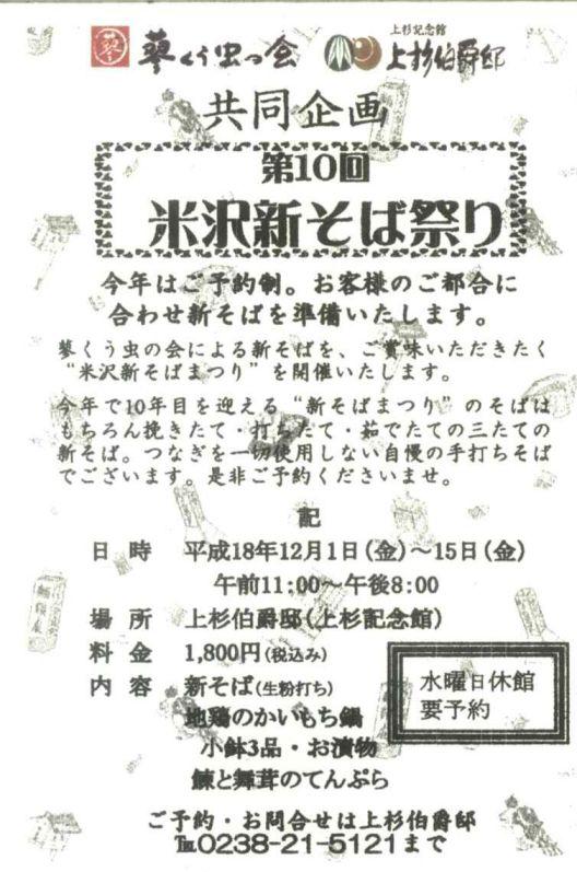 蓼くう虫の会による新そばを、ご賞味いただきたく“米沢新そば祭り”