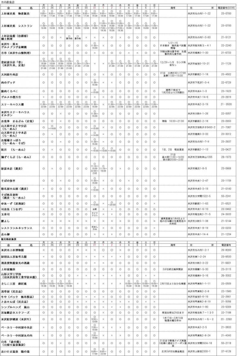 ▼年末年始の米沢市内観光施設営業情報