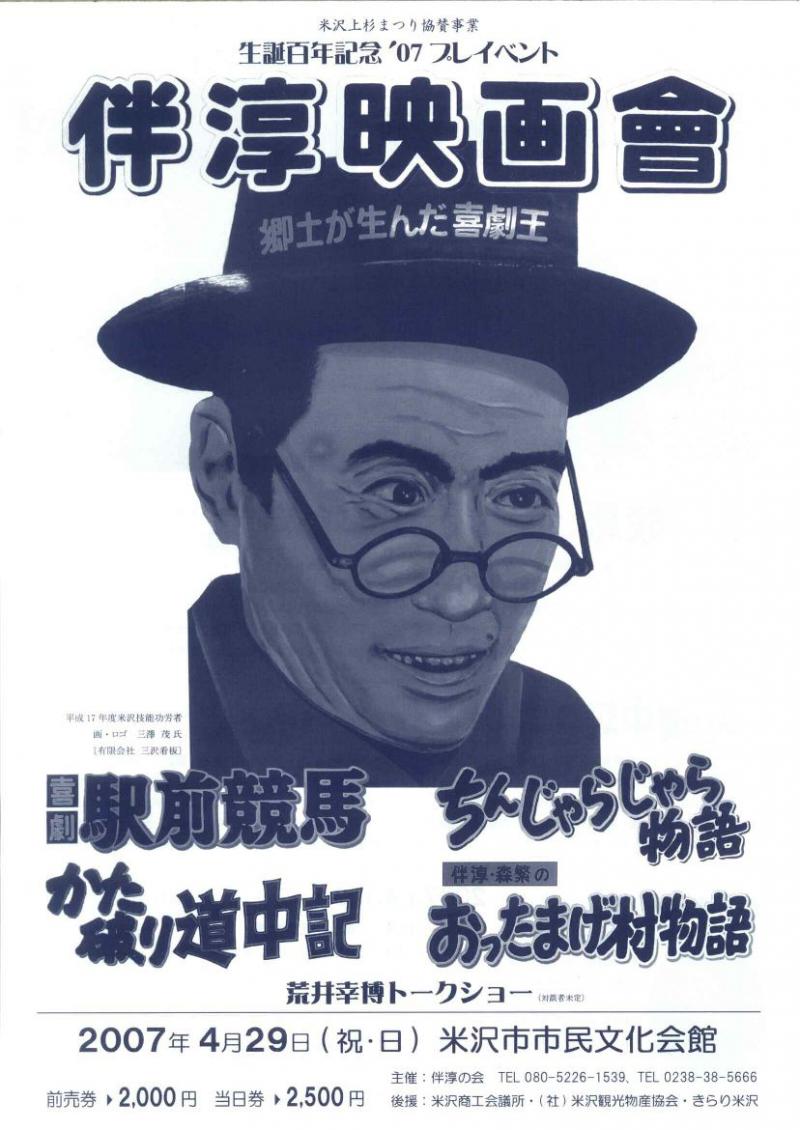 郷土が生んだ喜劇王 伴淳映画會が開催されます。