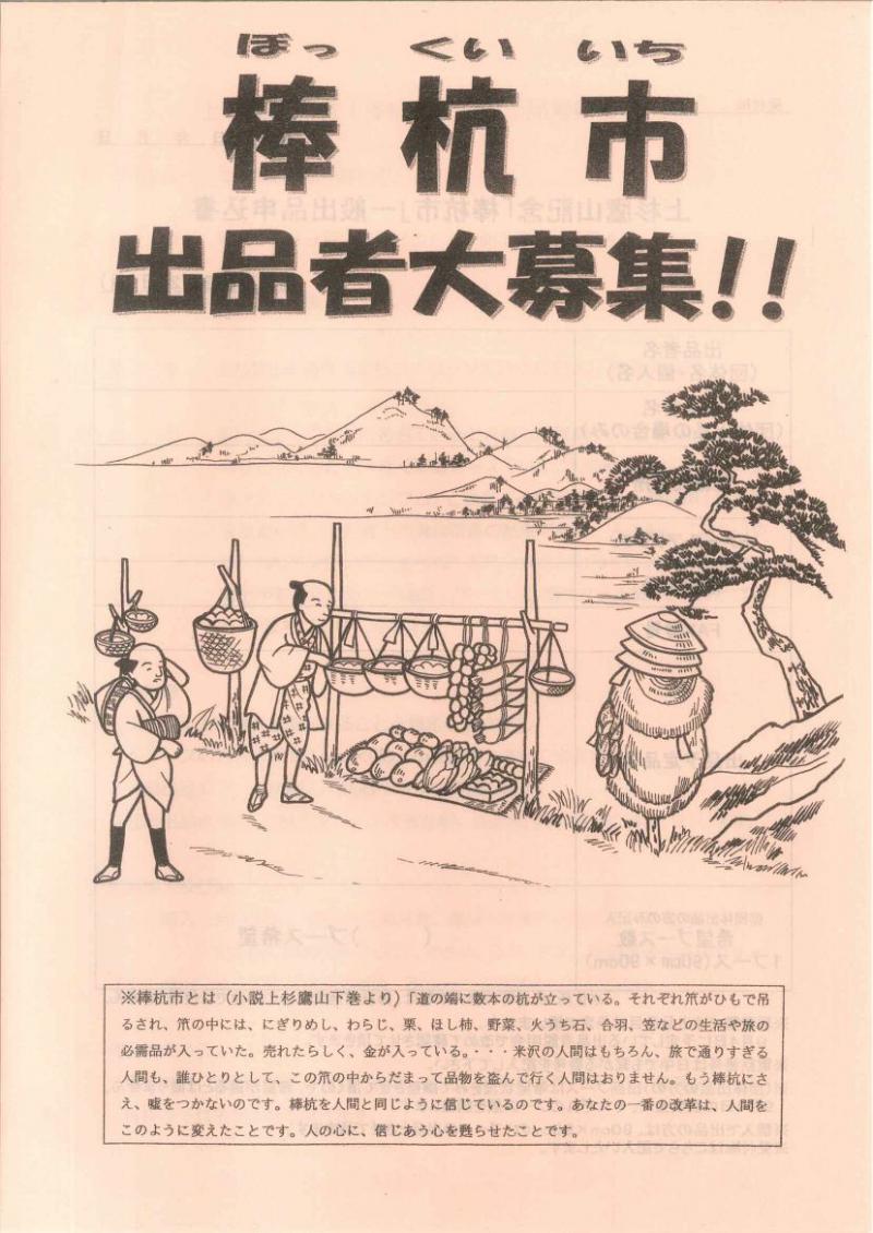棒杭市とは、上杉鷹山公の時代におこなわれていた無人販売