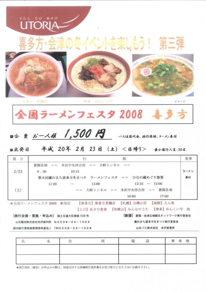 ▼「全国ラーメンフェスタ2008喜多方」バスツアー募集