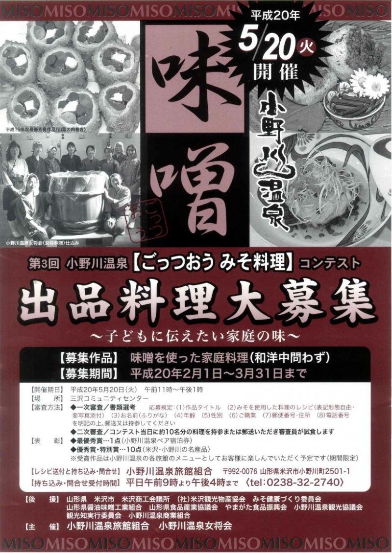 ▼小野川温泉「ごっつおう みそ料理」コンテスト出品料理大募集!
