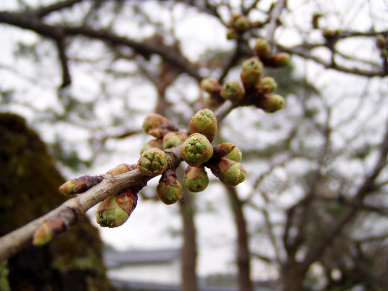 桜の状態は、つぼみの先が少し開いてきたようにみえます。