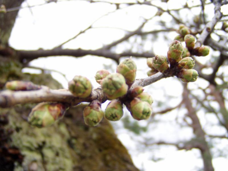 桜の状態は昨日に引き続きやや開き気味のつぼみ。