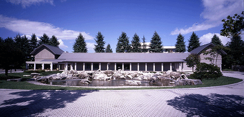 開館当時は鉄筋コンクリート造平屋建で、屋根が日本風の切り妻造り、建物自体はヨーロッパ風の建築様式が用いられ、前庭との調和を図った建物として建設されました。