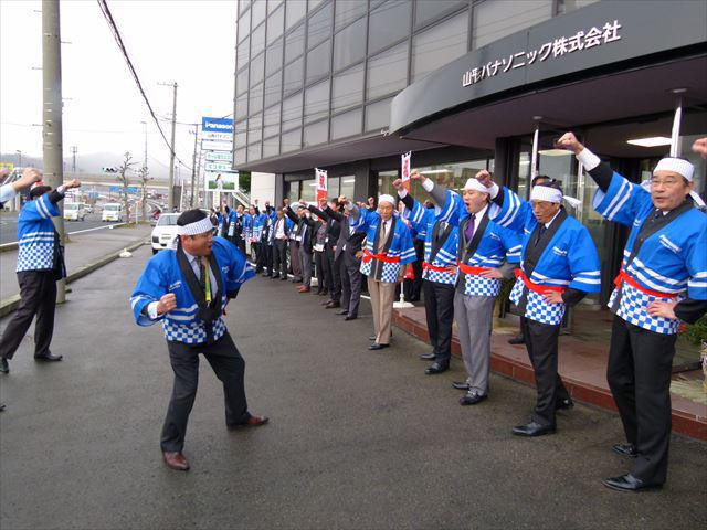 新年は5日から仕事初めです。年の初めはお取引先様の商売繁盛を願って初荷の出陣式をしました