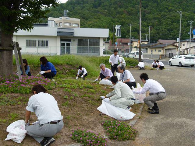 国道286線沿いの花壇や植え込みの雑草をとりました