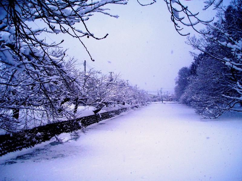 上杉公園のお堀も雪のじゅうたんを敷き詰めたよう