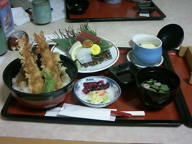 美味しくて食べごたえのある天丼に,お刺身&茶碗蒸し。