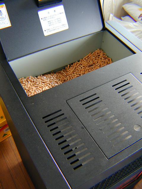ストーブの上部にペレットを入れる部分があります。大体20kg入ります。