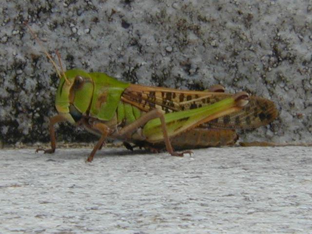 源流の森センターの芝生にはたくさんのバッタが生息。人目もはばからず本気になってパチッ!きっと変わり者だと思われたはず。