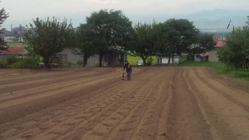 商品になるのは、12月中旬ごろからになります。8月30,31日播種作業をしました。今年は雨が降りませんので発芽不良のところも出ました。