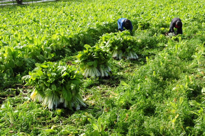 ▼雪菜の収穫作業が最盛期を迎えました