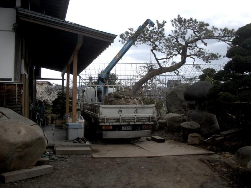 ▼東根市 Tさんの庭に松到着