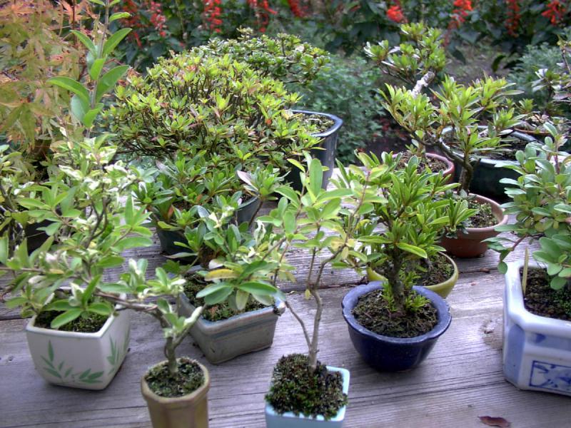 サギ草の他にも様々な樹を使ったミニ盆栽を