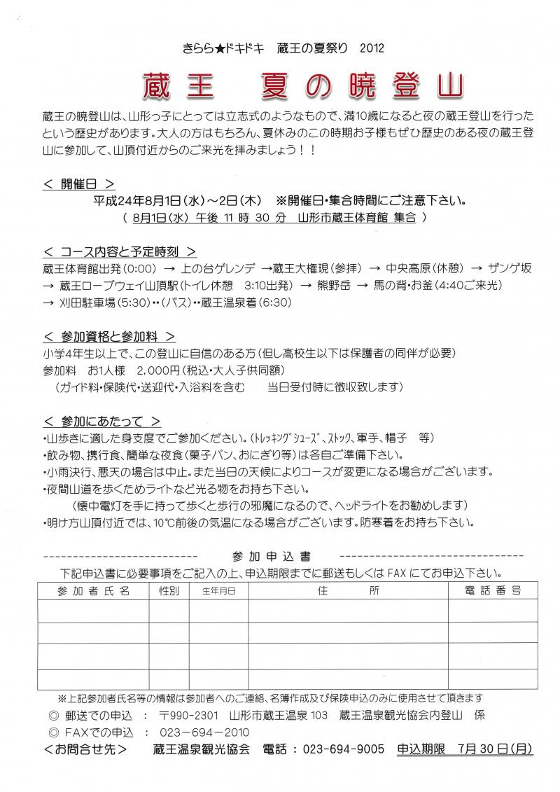▼蔵王 夏の暁登山 参加者募集中!!