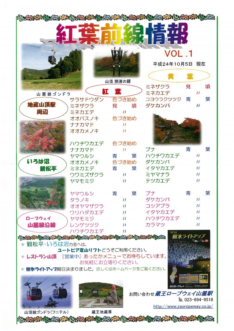 また、1,400mのユートピア 観松平周辺も色づき始めております。『蔵王』の紅葉狩りをお楽しみください!