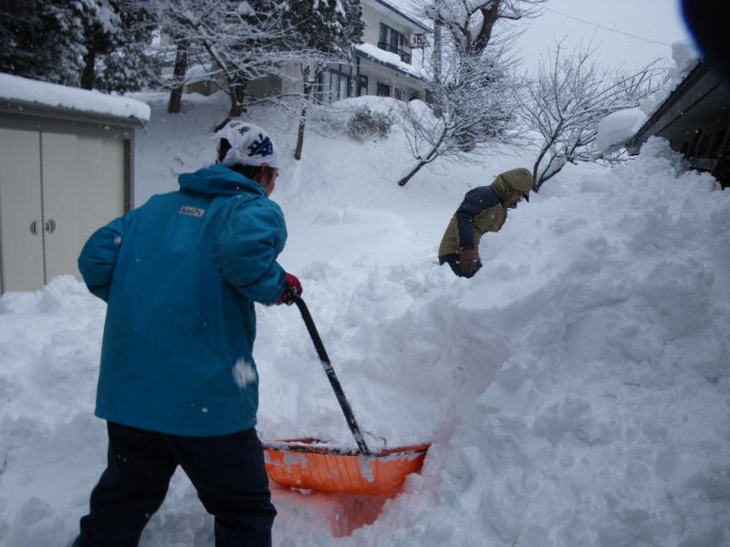 このところ続いた降雪で、屋根から落ちてくる雪がずいぶん積もりました。