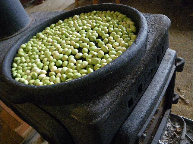 薪ストーブで秘伝豆を煎りました。自家製きな粉を作ります。