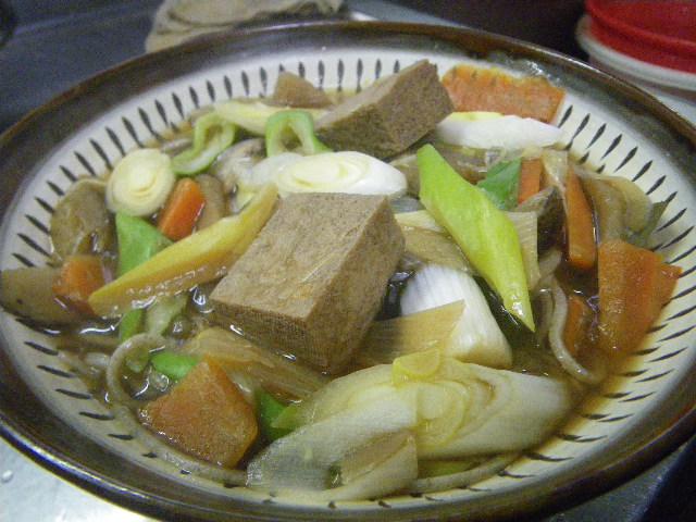 まかないは昨夜の蕎麦打ち教室でも出した「凍み豆腐のけんちん蕎麦」。