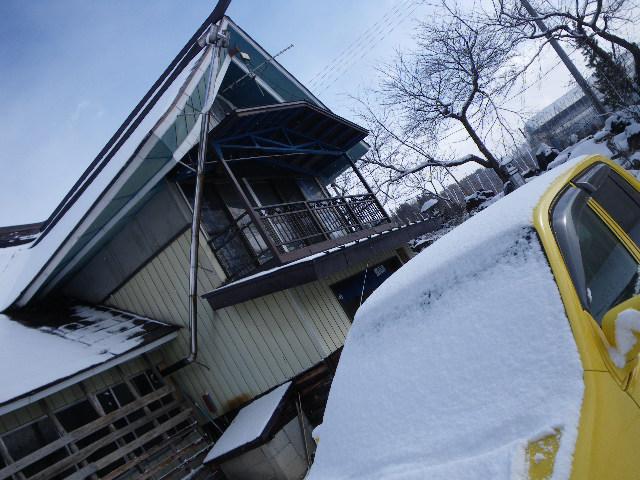 朝からすごい風で、雪が右から左へと水平に降っています。