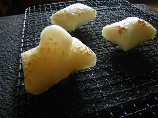 しらたかノラの会の白餅を焼く。