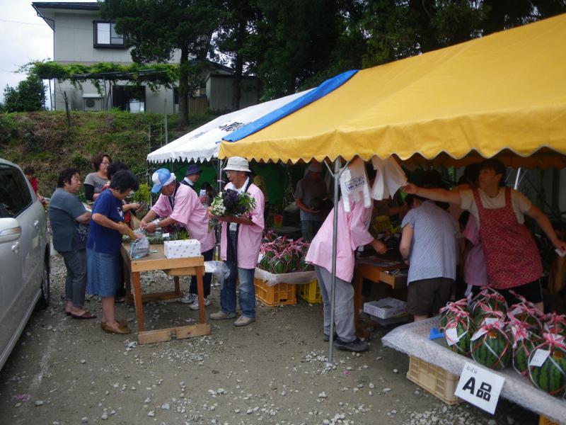 スイカと切り花は特設野外売り場で売られ