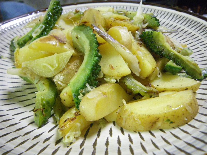 ジャガイモとゴーヤとミョウガのチャンプルー。